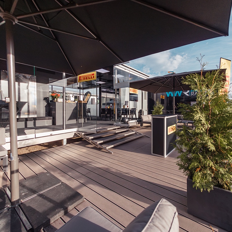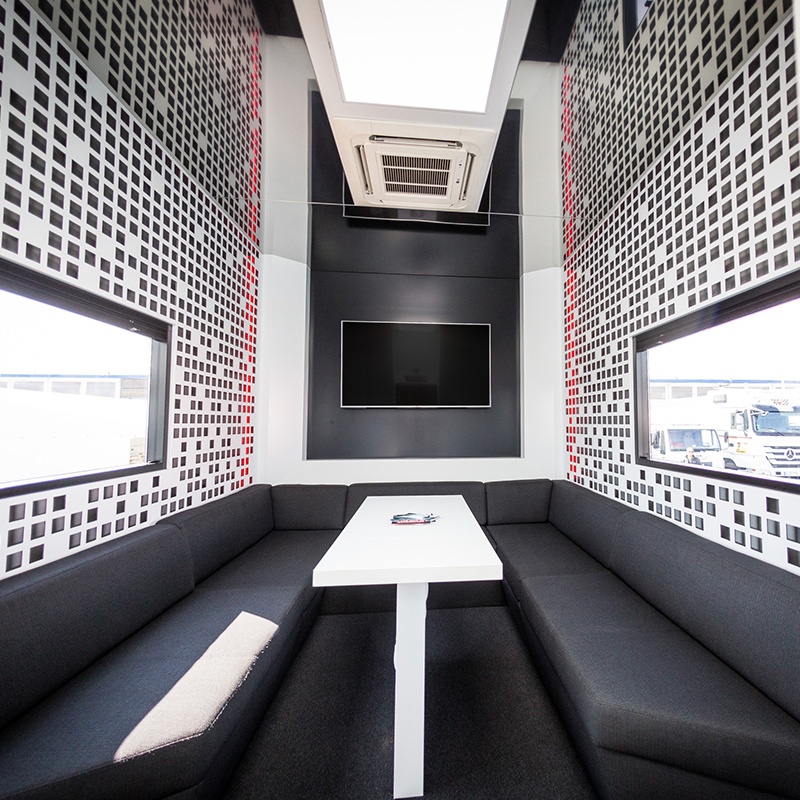 Der Glasscube überzeugt durch Funktionalität und erstklassige Ingenieurskunst. Durch die zwei automatisch ausfahrbaren Fold-outs entsteht in kürzester Zeit ein großzügiges Platzangebot. Die Deckenhöhe von 3 Metern ist exklusiv und verleiht dem Innenraum eine beeindruckende Präsenz. Die großzügig verglasten Fronten machen den Glasscube zudem zu einem eindrucksvollen Eyecatcher und setzen jede Präsentation perfekt in Szene.