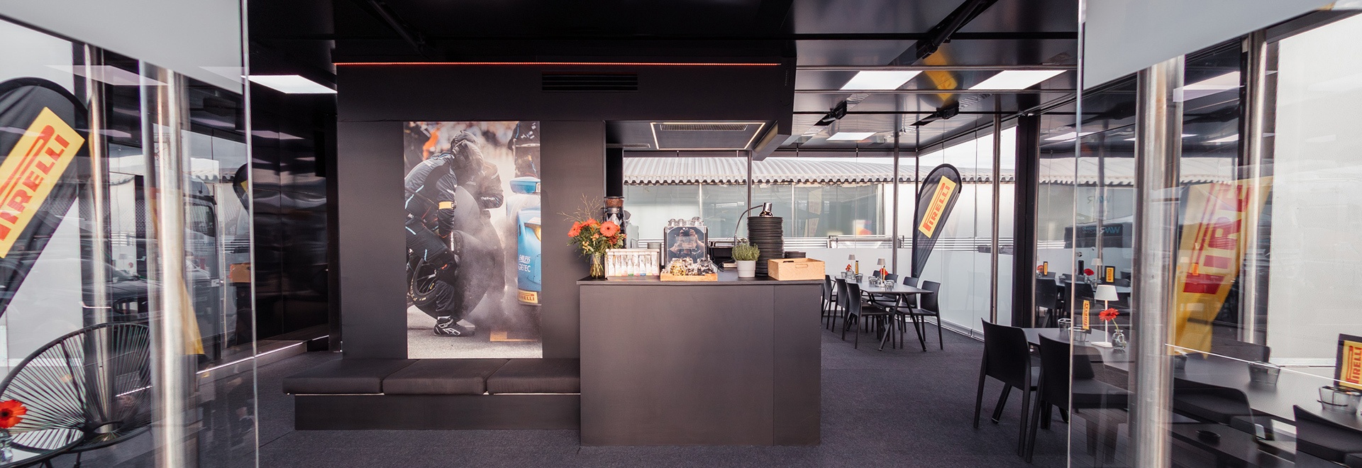 Individualisiert durch Logobranding und Fotodrucke kam zum Finale der DTM 2024 am Hockenheimring unser eleganter GlassCube für das Pirelli Team zum Einsatz. Der GlassCube steht leicht erhöht und bietet Platz bis zu 30 Personen. Die Rundumverglasung begünstigt viel Licht und bot den Gästen von Pirelli auch zeitgleich einen Blick in das Fahrerlager der DTM. Die Hospitality mit der großzügigen Terrasse und gemütlichen Lounge Möbeln lud zu einem entspannten Aufenthalt an der Rennstrecke ein, bei dem auch kulinarisch keine Wünsche offenblieben.Ein umfangreiches Catering mit Frühstück und Snacks, sowie jeweils einem 3-Gänge-Buffet zum Mittag- und Abendessen versorgte alle Gäste von früh bis spät mit zahlreichen Leckereien.
