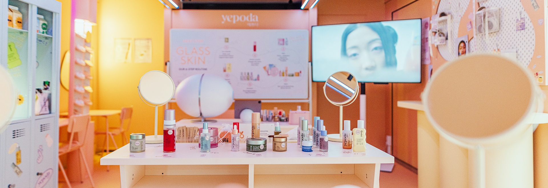 Von Ende Juni bis September ging es für eila und die Agentur EAST END mit der koreanischen Skincare-Marke YEPODA auf Europatour – sieben Stopps in vier Ländern, die ganz im Zeichen von Beauty, Experience und Community standen.Der individuell gestaltete Expandable Single wurde dafür in ein einzigartiges koreanisches Klassenzimmer verwandelt – mit authentischen Details wie Vending-Machine, Schulspinten, Whiteboard und einem separaten Photobooth-Bereich hinter einem Vorhang. Das Farbkonzept aus Peach, Pink und Mintgrün schuf eine moderne, freundliche Atmosphäre, die perfekt zum Look & Feel der Marke passte.