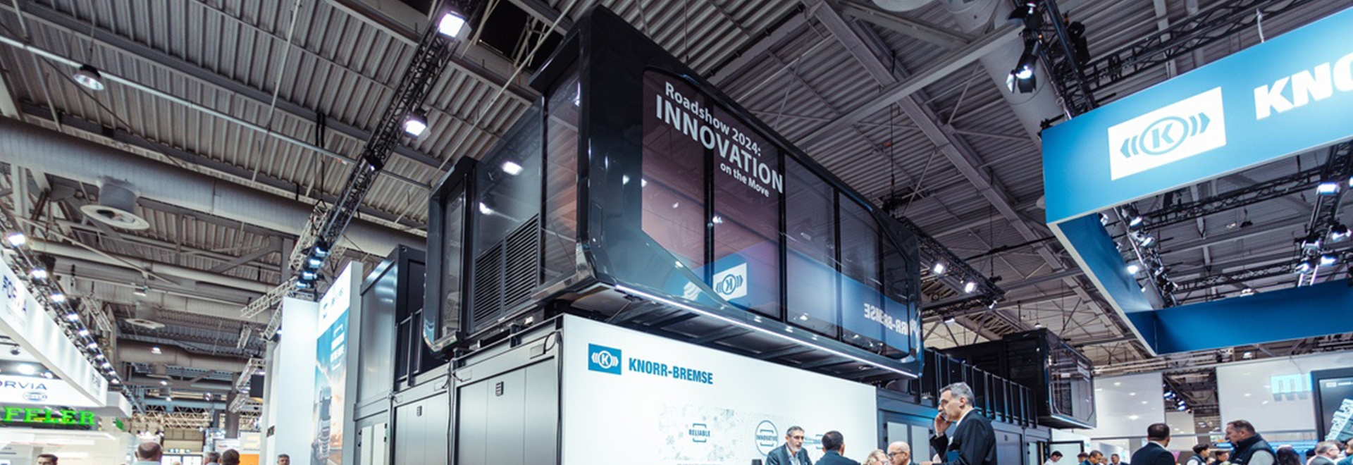 An extraordinary project was realized at the IAA Commercial Vehicles 2024. The task initially seemed quite straightforward: two of our Expandable POD roadshow modules were to be used for our client Knorr-Bremse during the IAA Commercial Vehicles. During the course of the project, the containers were gradually integrated into the trade fair setup and eventually found their final position on the exhibition stand at a height of three meters. Despite strict trade fair guidelines and short setup times, we managed to lift the 6-ton PODs into position and put them into operation.Additionally, eila took care of the desired customizations of the units to comply with location guidelines. For the interior, eila designed and produced a certified fall protection system and applied shatter protection films. As a highlight and "eye-catcher" of the trade fair appearance, the two containers ultimately housed nothing less than the prototype exhibition of the latest generation.